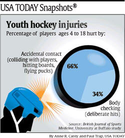 In einer USA Today: Wie sich jugendliche Eishockeyspieler verletzen. Ganz oft irgendwie. Und ziemlich oft andere. Mit Absicht. Ein Dekogramm, würde er sagen. Erst dachte ich: Die Grafik ist nicht ernst. Das Thema auch nicht. Sie will nicht ernst sein. Muss sie auch nicht. Dann überlegte ich: Verletzungen sind nicht lustig.