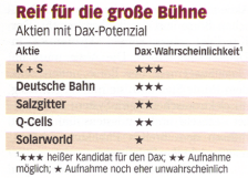 Immer, wenn wir drei Sterne sehen, heißt das jetzt: der kommt bald in den Dax. Ein Stern heißt: eher nicht. Meint die Wirtschaftswoche. Ich weiß nicht. Ob sich das so durchsetzt?