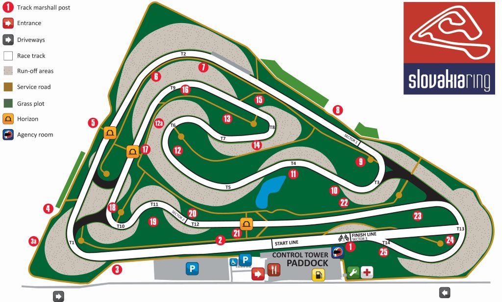 Zu den ersten Rennen am Slovakiaring reisen wir mit gemischten Gefühlen an. Andere Teams haben schon am Vortag trainiert. Es wurden in unserer Klasse bereits Rundenzeiten um 2 : 13 gefahren. Mit Mühe und behindert durch sehr gemischte Wetterbedingungen, die nur wenige Runden auf trockener Fahrbahn zulassen, kommen wir nur auf 2 : 16. Dürfen wir eine Sekunde abziehen, weil wir zu zweit im Auto waren? Wo stimmt unsere Linie nicht? Ist unser Ansatz doch zu akademisch, um gegen schiere Fahrpraxis zu bestehen? Hoffentlich regnet es am Renntag, dann würden die Karten neu gemischt und der Einfluss der Vorerfahrung würde zu unseren Gunsten geringer werden.