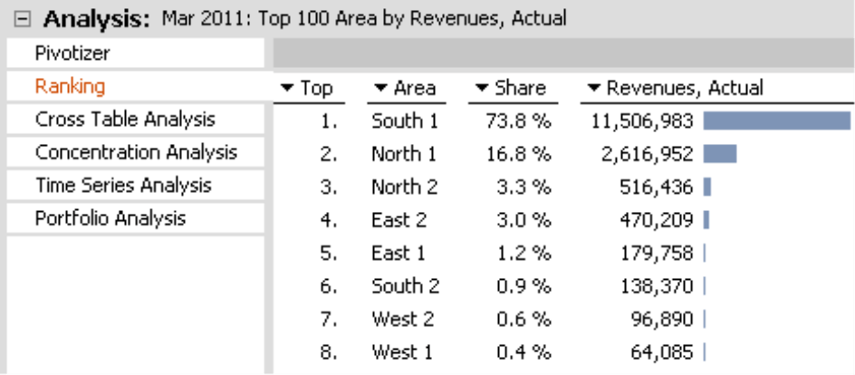 Based on this example, you can see how useful the specialized analytical methods in Analyzer are. You could have sorted the customers in a pivot table as well – but not in two directions (i.e. not ascending and descending at the same time).