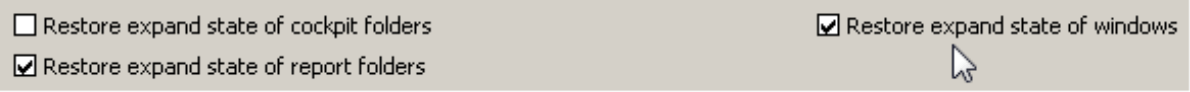 You can activate the Restore the expand state of windows switch in the Extras menu under Options on the General tab. At the end of each session, this expand state is saved for each user in the Windows registry. As a result, it applies to all analysis files that you edit on a given computer. If a start report has been defined in an analysis session, DeltaMaster will open the Briefing book to show where this start report is located. This setting overrides the saved status according to which the Briefing book should be collapsed.