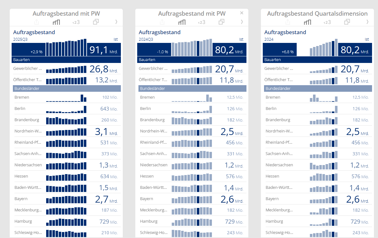 Die Daten sind unter 44141-0010 – Auftragsbestand im Bauhauptgewerbe: Bundesländer, Quartale, Bauarten zu finden.
