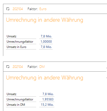 Wir können nun Beträge nachträglich auch in anderen Währungen anzeigen, obwohl die Datenbank nur Euro vorhält: