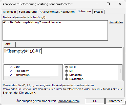 Eine Lösung, um dieses Problem zu umgehen, liegt in der Ableitung einer neuen Kennzahl aus der Beförderungsleistung. Wenn ein Wert vorhanden ist, übernehmen wir diesen, wenn nicht, dann wird ein Wert 0 angenommen: Auf einem OLAP-Würfel geht das mit MDX folgendermaßen:
