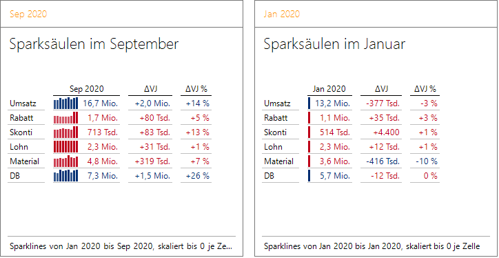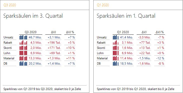 Somit kann man sich nun auf dynamisch angepasste Längen der Sparklines beziehen, die die Ebene der ausgewählten Periode berücksichtigen: