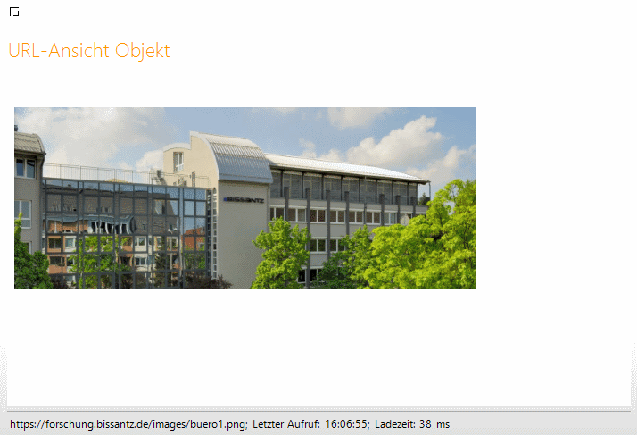 Nützlich könnte bei der Darstellung auch ein Foto des Gebäudes sein, das wir dynamisch per URL-Ansicht (demnächst offiziell verfügbar) einblenden, hier die Nürnberger Zentrale: