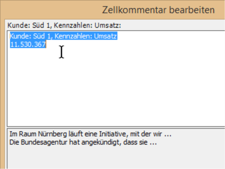 Oben im Bearbeitungsdialog ist angegeben, auf welche Zelle sich der Kommentar bezieht.