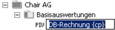 Zum Umbenennen drücken Sie die Taste F2 oder wählen die entsprechende Option aus dem Kontextmenü. Der Name kann jetzt direkt in der Berichtsmappe bearbeitet werden. Die Variable für den aktuellen Zeitpunkt heißt „{cp}“ (current period).
