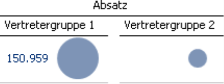 Wie alle Zellgrafiken in DeltaMaster können die Kreise in bestimmten Spalten ausgeblendet werden, indem Sie die Anzeige in den Spalteneigenschaften (Kontextmenü der Spaltenköpfe) deaktivieren. Wäre zum Beispiel das Top-Element „Alle Produkte“ in der Tabelle enthalten, könnte man in dieser Spalte die Kreise unterdrücken, damit die Skalierung nicht von den Summenwerten beeinflusst wird.