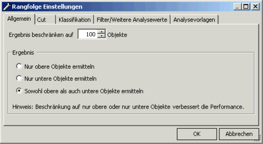Bei großen Datenbeständen lässt sich das Antwortzeitverhalten mit ein paar Einstellungen verbessern: Die Datenbankabfragen laufen schneller, wenn Sie die Anzahl der Datensätze beschränken. Greift die Beschränkung, so weicht die Summe der in der Anteilsspalte angezeigten Prozentwerte möglicherweise von 100 % ab, da die Anteile stets an der Gesamtheit aller Objekte der aktuellen Sicht bemessen werden, einschließlich der nicht angezeigten. Die Legende dokumentiert diesen Umstand. Eine weitere Beschleunigung erzielen Sie, wenn Sie nur obere bzw. nur untere Objekte ermitteln lassen.
