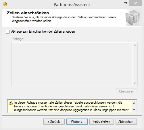 ii. „ROLAP-Aggregationen aktivieren“ bedeutet, dass materialisierte Views für Aggregationen auf der relationalen Datenbank erstellt werden.