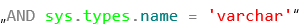 AND sys.types.name = 'varchar'