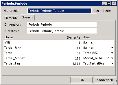 Abbildung 7: Einstellungen in der Dimension Periode und der Hierarchie Tertiale