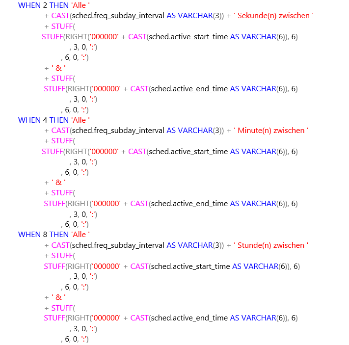 Die Zeitpläne für Systemaufträge wurden hier wieder durch die WHERE-Bedingung entfernt.