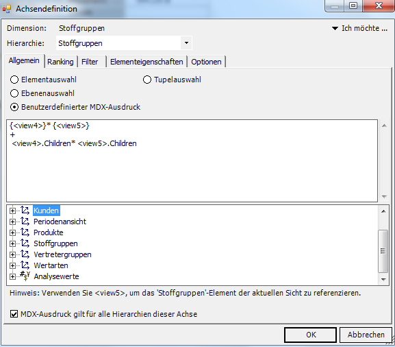 Abb. 6: Achsendefinitionsdialog für hierarchieübergreifende MDX-Ausdrücke