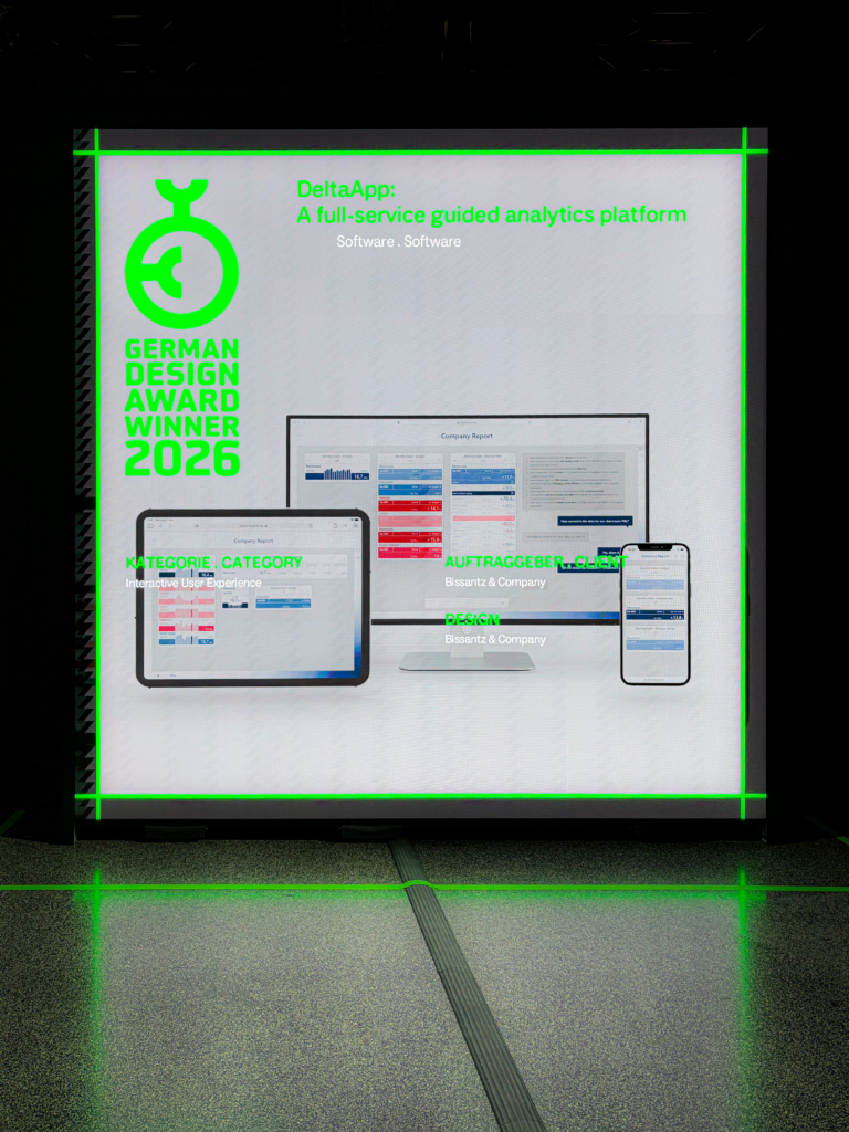 In diesem Sinne verstehen wir die Auszeichnung nicht nur als Designpreis. Sie bestätigt einen Ansatz, den wir bei Bissantz seit vielen Jahren verfolgen: Design ist integraler Bestandteil analytischer Intelligenz. Wer Daten analysiert und visualisiert, muss verstehen, wie Wahrnehmung funktioniert, wo ihre Grenzen liegen und wie menschliche Aufmerksamkeit gelenkt wird.