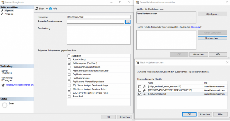Um die in diesem Artikel beschrieben Funktionen nutzen zu können, wird ein Dienstkonto für den SQL Agent (oder ein Proxy User) benötigt, welcher Mitglied in der lokalen Administratorengruppe ist.
