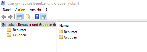 Im regulären Fall ist die klare Empfehlung einen Active Directory User zu nutzen. Sollte dies nicht möglich sein, so können wir natürlich auch auf dem lokalen Server einen User anlegen. Hierfür wird die „Lokale Benutzer und Gruppen“ – Konsole (lusrmgr.msc) genutzt.
