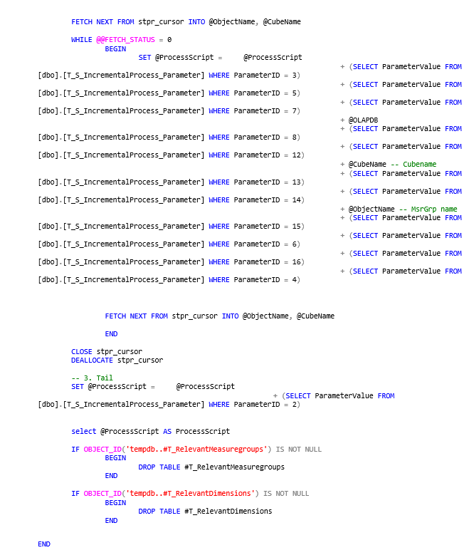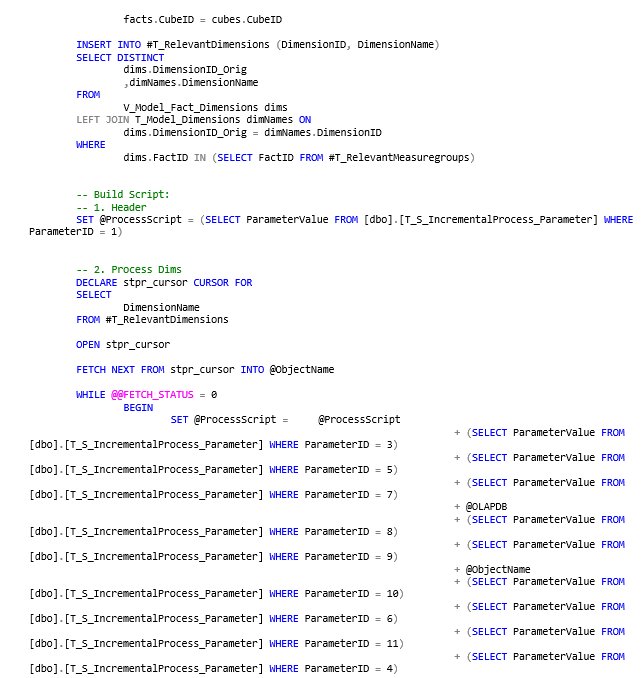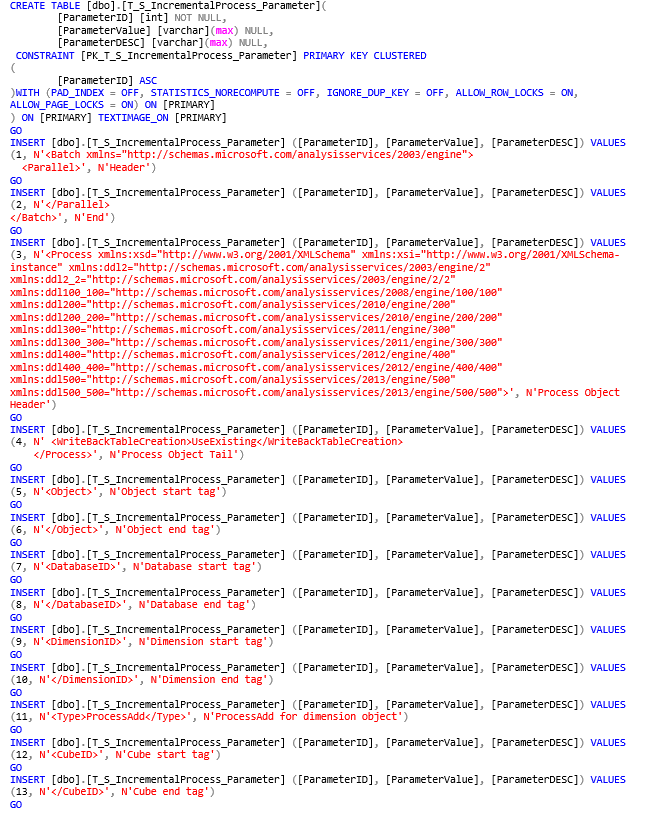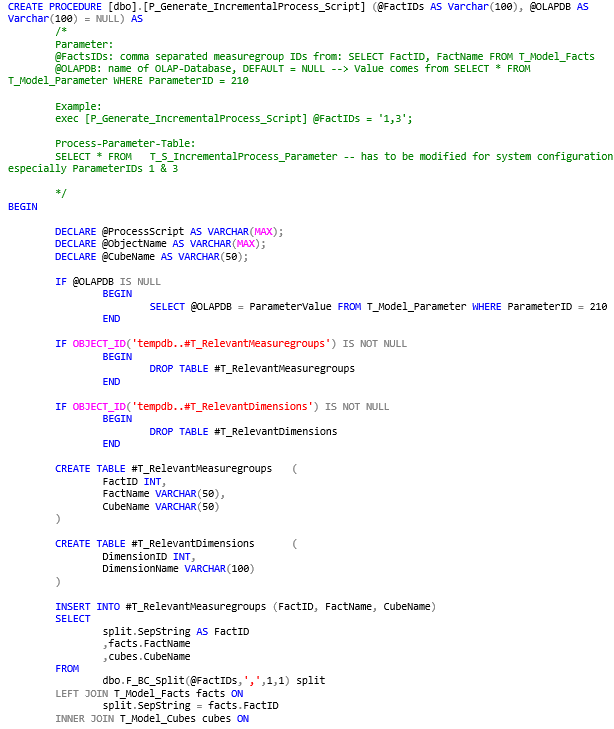 Zunächst muss eine Parametertabelle für die Skriptgenerierung angelegt werden (T_S_IncrementalProcess_Parameter). Diese enthält diverse Parameter aus denen das Skript anschließend generiert werden kann.