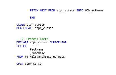 Die Erstellung eines solchen XMLA-Skripts ist mühsam und auch fehleranfällig. Daher wird im Folgenden eine Prozedur vorgestellt, die für DeltaMaster ETL-Modelle passende XMLA-Skripte generieren kann. Das Skript zur Erstellung dieser Prozedur ist im Anhang zu finden.