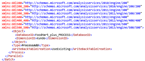Der XMLA-Code für unser Beispiel sieht dann wie folgt aus: