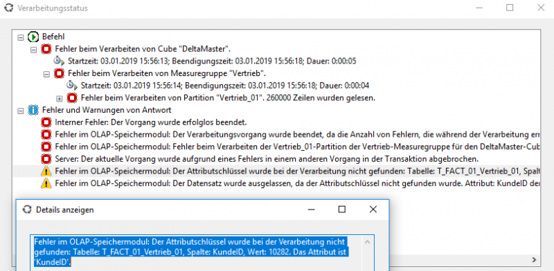 Abbildung 3: Verarbeitungsfehler, verursacht durch nicht aktualisierte Dimension