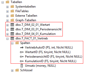 Die Tabellen der Dimensionsebenen werden nicht erstellt und die Spalten werden aus den Faktentabellen herausgelassen: