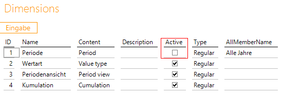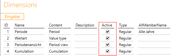 Diese Logik der „Umleitung“ wird nur für Dimensionen erstellt, welche das Einfügen des Default-Elements aktiviert haben. In unserem Beispiel ist dies nur bei der Periode der Fall.