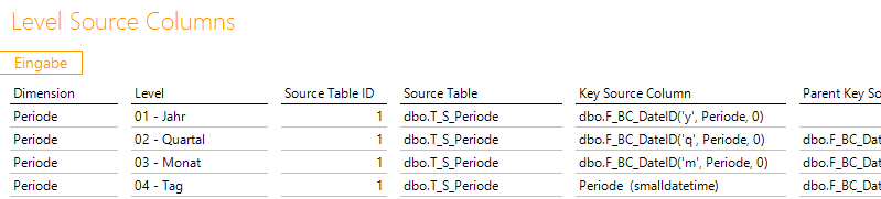 Wirft man nun einen Blick in die relationale und die OLAP-Datenbank, stellt man fest, dass trotz vorhandener Modelldefinitionen die Perioden-Dimension komplett außen vor ist.