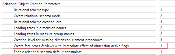 Aufgrund möglicher negativer Performance-Einflüsse wird diese Logik nur bei neuen Modellen standardmäßig aktiviert. In allen Bestandsmodellen bleibt die Logik ausgeschaltet, so dass die Faktenroutinen wie bisher aufgebaut werden. Sollte die hier beschriebene „Live-Deaktivierung“ von Dimensionen dennoch gewünscht werden, muss der Parameter manuell aktiviert und die Befüllungsroutinen per „Create relational schema“ neu erzeugt werden.