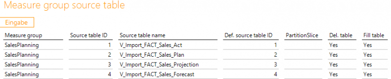 Wie schon erwähnt, ist es grundsätzlich richtig, die Daten zunächst in die „normale“ Faktentabelle (T_FACT) zu laden, da hier (im Gegensatz zu den Rückschreibtabellen) alle Fremdschlüssel ordentlich gesetzt sind. Für ein ordnungsgemäßes Funktionieren des Rückschreibens auch auf die Vorschlagswerte, sind diese allerdings nach dem Laden in die T_FACT-Tabelle noch in die T_WriteBackSQL zur transferieren. Dies muss aktuell manuell passieren, da es aufgrund der sehr individuellen Modellkonstellationen aktuell noch keinen Automatismus gibt.